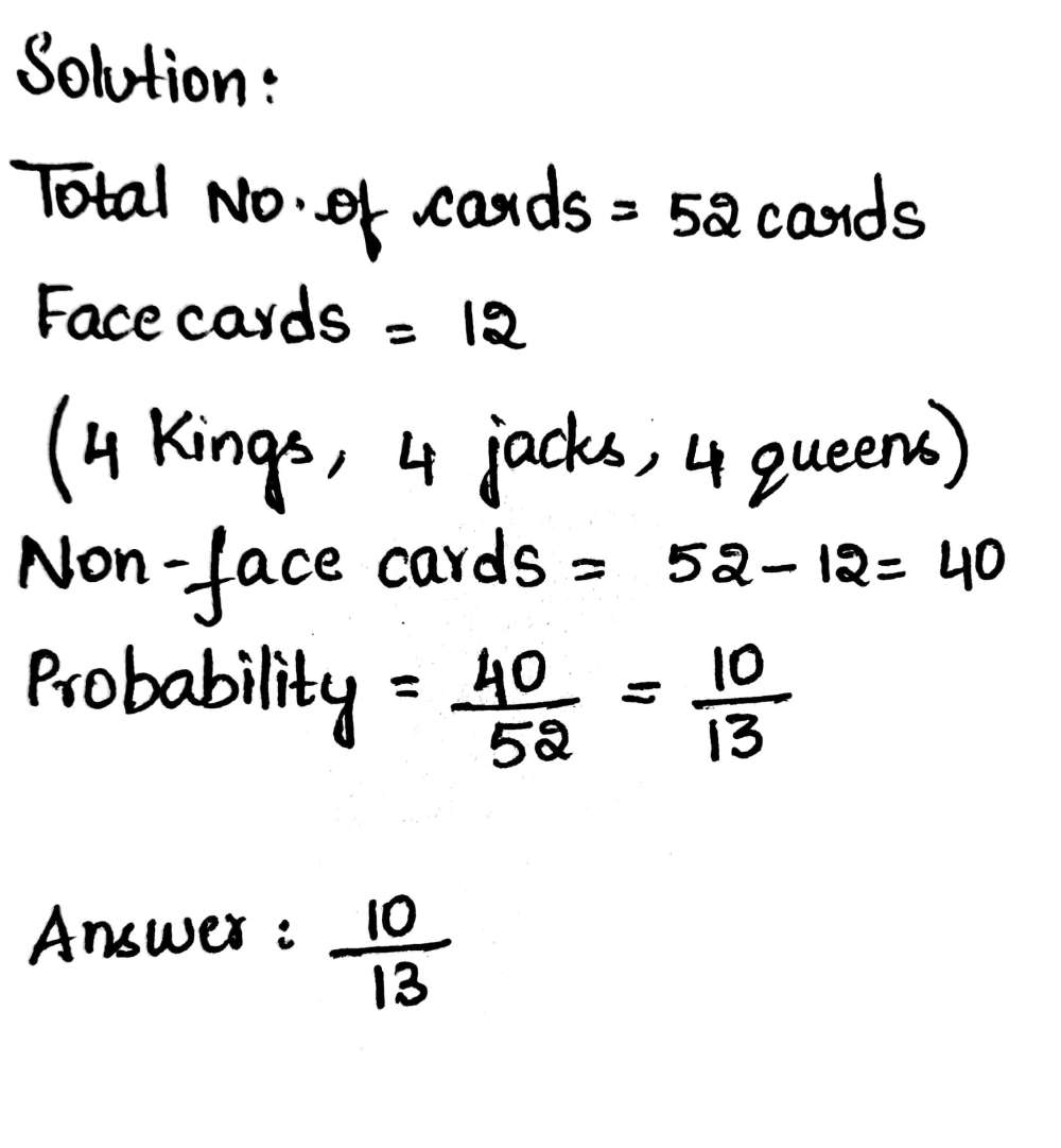 Deck of cards is the term used for a set of 52 cards the probability it is not a face card is 10/13.